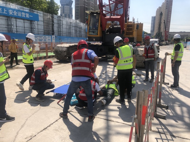本次應(yīng)急演練活動(dòng)模擬施工現(xiàn)場(chǎng)履帶式起重機(jī)在作業(yè)過(guò)程中由于鋼絲繩斷裂,吊物從高處掉落倒下,不幸將地面一名作業(yè)人員腳部砸傷的事故?,F(xiàn)場(chǎng)專(zhuān)職安全員發(fā)現(xiàn)后第一時(shí)間向應(yīng)急救援指揮部匯報(bào),應(yīng)急救援指揮部立即啟動(dòng)應(yīng)急預(yù)案,各應(yīng)急救援小組接到救援命令后,迅速跑向事故地點(diǎn),對(duì)受傷人員開(kāi)展救援工作,同時(shí)拉起警戒線,保護(hù)現(xiàn)場(chǎng)。救援人員按預(yù)案分工,有條不紊地實(shí)施清障、包扎、傷員擔(dān)架固定、運(yùn)送上救護(hù)車(chē)等一系列動(dòng)作。本次演練活動(dòng),增強(qiáng)了員工的安全操作意識(shí),提高了快速反應(yīng)能力、應(yīng)急救援能力以及協(xié)同作戰(zhàn)能力。