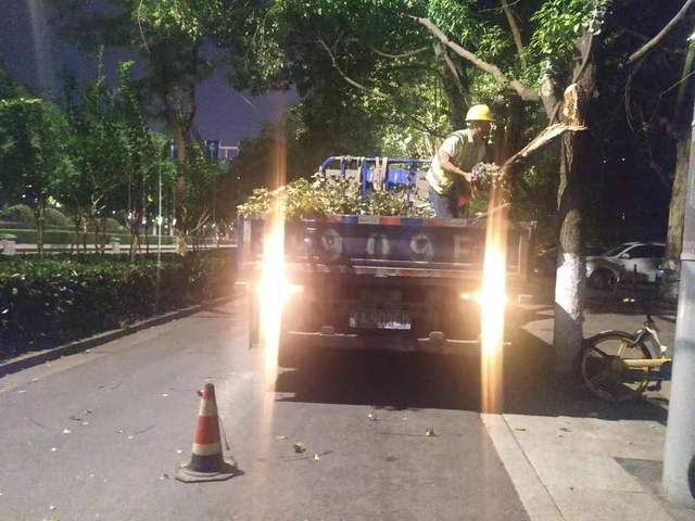 綠化養(yǎng)護(hù)隊(duì)伍,進(jìn)行24小時(shí)值班巡查,對(duì)出現(xiàn)的倒伏樹木、斷枝和破損的市政設(shè)施,及時(shí)進(jìn)行消險(xiǎn)處理。本次防汛過(guò)程中共出動(dòng)巡查及搶險(xiǎn)人員90人次,投入車輛30臺(tái)次,清除危亭1處,險(xiǎn)樹5處、斷枝4處。不僅保證養(yǎng)護(hù)區(qū)域綠化植物安全度汛,更保障了居民安全出行。