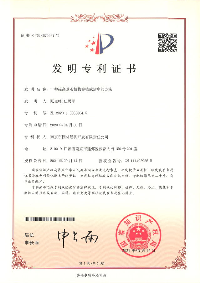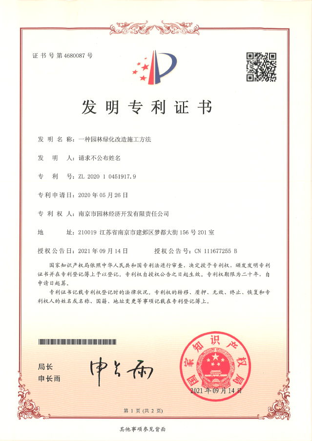 近日,河西集團(tuán)南京市園林經(jīng)濟(jì)開(kāi)發(fā)有限責(zé)任公司喜獲兩項(xiàng)國(guó)家發(fā)明專利授權(quán)。