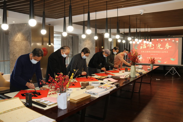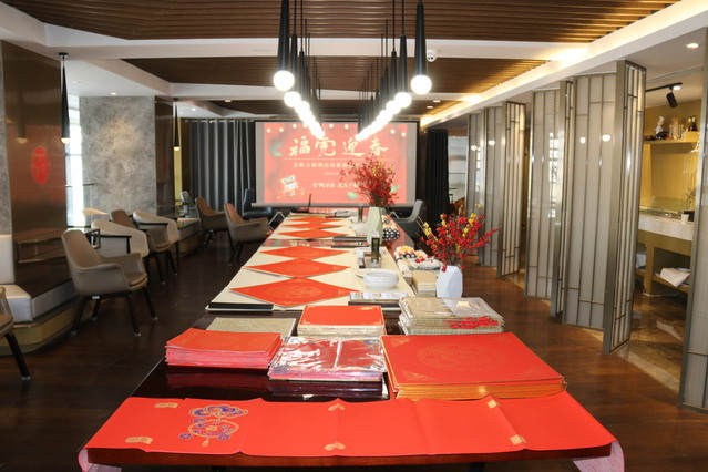 寫春聯(lián)、貼春聯(lián)是中國春節(jié)的傳統(tǒng)習俗,也是辭舊迎新過大年的一種象征。為弘揚中華書法藝術與傳統(tǒng)節(jié)日文化,給市民、住店客人送上新春祝福。近日,河西集團青奧城公司金帆萬源酒店開展“?;⒂骸?022新年納福公益筆會,來自南京的書畫名家應邀出席。