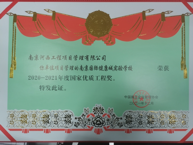 近期,河西集團(tuán)新城公司所屬南京河西工程項(xiàng)目管理有限公司代建的南京國際健康城實(shí)驗(yàn)學(xué)校項(xiàng)目項(xiàng)目喜獲“2020-2021年國家優(yōu)質(zhì)工程獎”。