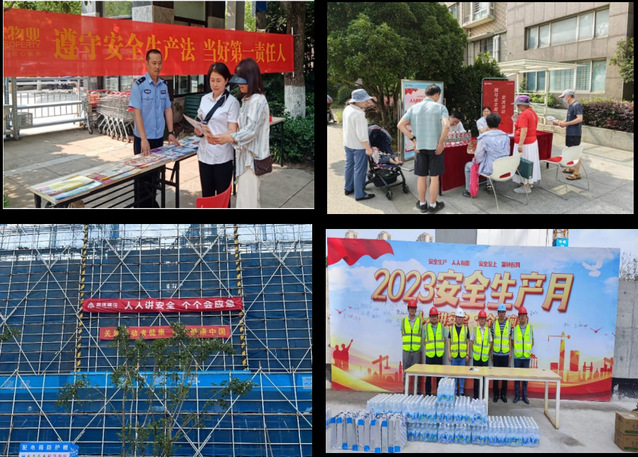 結(jié)合今年“安全生產(chǎn)月”的主題,集團(tuán)通過一系列宣傳活動(dòng)把“安全生產(chǎn)月”的要求和精神傳導(dǎo)到基層,組織下屬公司策劃了多個(gè)深入基層一線、群眾喜聞樂見的宣傳活動(dòng)。物業(yè)公司舉辦講座6場,懸掛橫幅48條,布置海報(bào)架或張貼海報(bào)33張,派發(fā)宣傳單800余份,持續(xù)不斷增強(qiáng)活動(dòng)影響力,形成了階段性宣傳熱潮;紫金商管公司成立義務(wù)宣傳小組,重點(diǎn)在社區(qū)中心、商業(yè)街區(qū)、裝修工地懸掛橫幅10余幅,現(xiàn)場發(fā)放安全生產(chǎn)小貼士、消防逃生小知識(shí)、滅火器使用方法等安全知識(shí)宣傳冊共計(jì)500余份;新城公司設(shè)計(jì)制作了安全生產(chǎn)管理宣傳單以及現(xiàn)場應(yīng)急救援知識(shí)折頁,將安全生產(chǎn)防范知識(shí)傳遞到每個(gè)項(xiàng)目、每個(gè)工人。