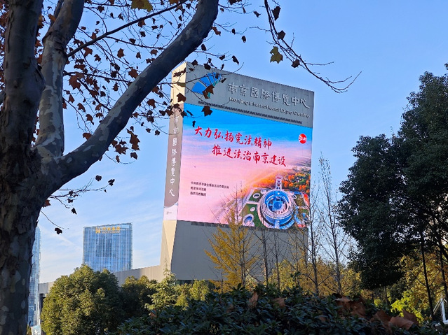 憲法是國家的根本大法,是治國安邦的總章程。今年12月4日是第十個國家憲法日,12月4日所在的周是第六個“憲法宣傳周”。為深入學習宣傳貫徹習近平法治思想,著力營造學習宣傳憲法的濃厚氛圍,弘揚憲法精神,維護憲法權(quán)威,集團充分借力戶外大屏媒介載體進行普法宣傳,會展、公園、酒店等板塊根據(jù)集團部署聯(lián)運同步點亮“大力弘揚憲法精神、推進法治南京建設(shè)”宣傳標語,利用各類公共場所電子顯示屏滾動播放,使憲法宣傳走進千家萬戶。